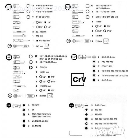 -13 броя вложки:4, 4.5, 5, 5.5, 6, 7, 8, 9, 10, 11, 12, 13, 14мм