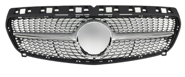 Диамантена предна решетка Mercedes CLA W117 AMG: Спортна предна решетка тип „диамант“ подходяща за: Mercedes-Benz W117 CLA-Class 2013-2019г. *В комплекта не е включена предната емблема (ползвате си емблемата от старата решетка) Предназначени специално за модела! Високо качество на изработка! Перфектно пасванe.