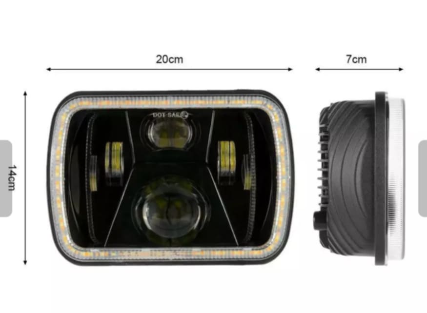 Универсален 60W ЛЕД LED фар лампа халоген 12V-24V къси/дълги с DRL дневни светлини мигач бяло-жълто 20 x 14cm за АТВ джип мотоциклет камион трактор и др.