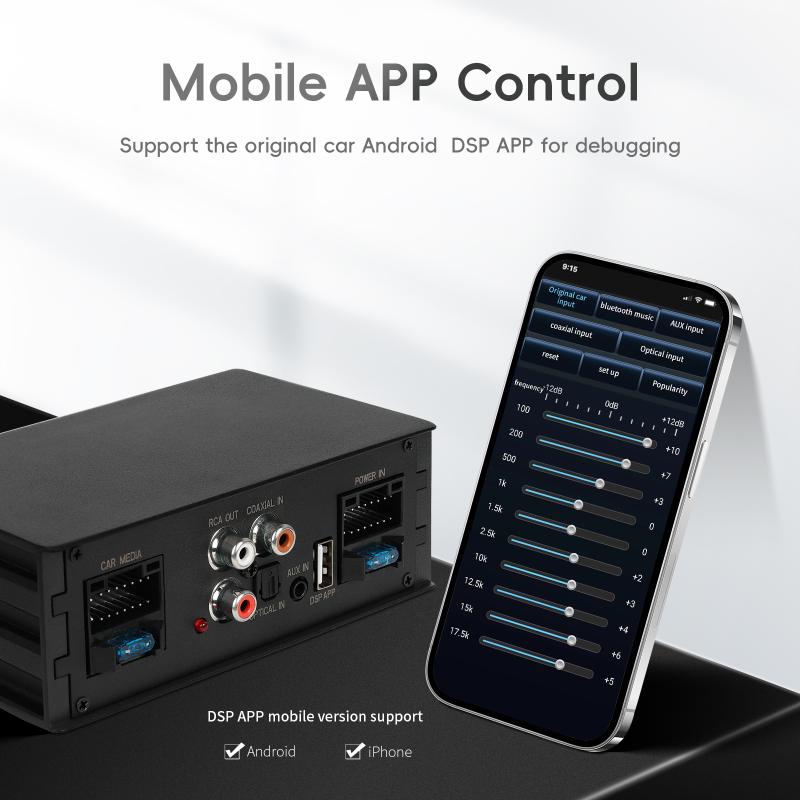 ● Безпроблемна интеграция: Проектиран да се интегрира безпроблемно с вашата съществуваща автомобилна аудиосистема, нашият DSP звуков еквалайзер подобрява качеството на звука, без да изисква сложни инсталации. Съвместим с разнообразие от модели автомобили и аудиосистеми.