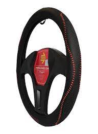 Калъф за волан MOMO черен с червен конец