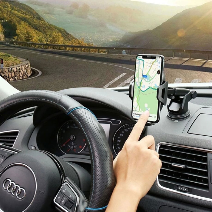 Универсална стойка за телефон с вакуум и удължено рамо, за по-добра видимост.