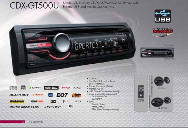 DVD Плеър за кола CDX GT500 с падащ панел чете CD/DVD дискове, вход USB и aux.