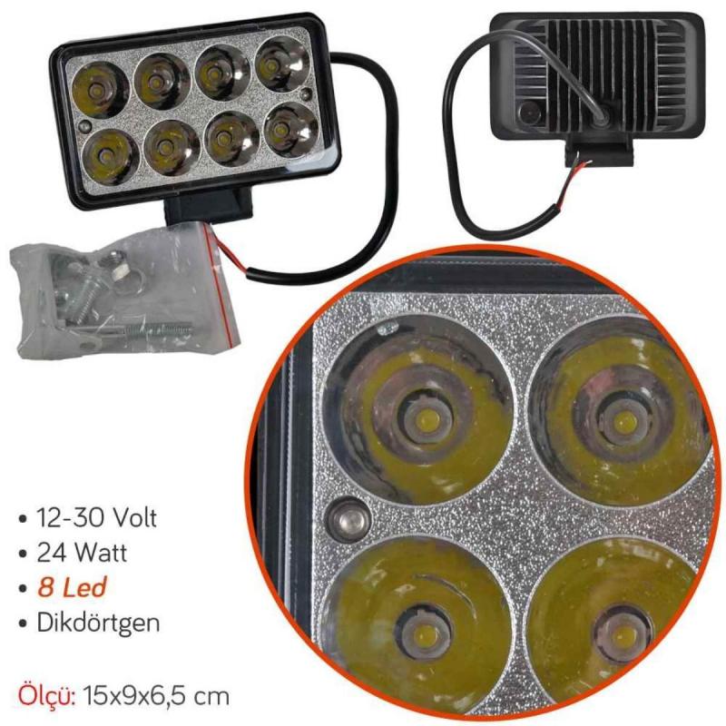 • 8 LED правоъгълна работна лампа подходяща за Офроуд, пътнически и търговски превозни средства като фарове за мъгла, градинско осветление в домовете, лодки и т.н. използван на много места.