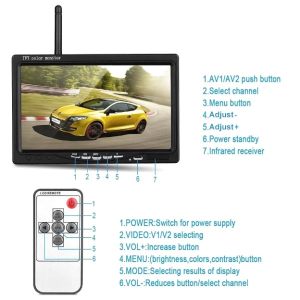 1 х Цветен монитор 7"