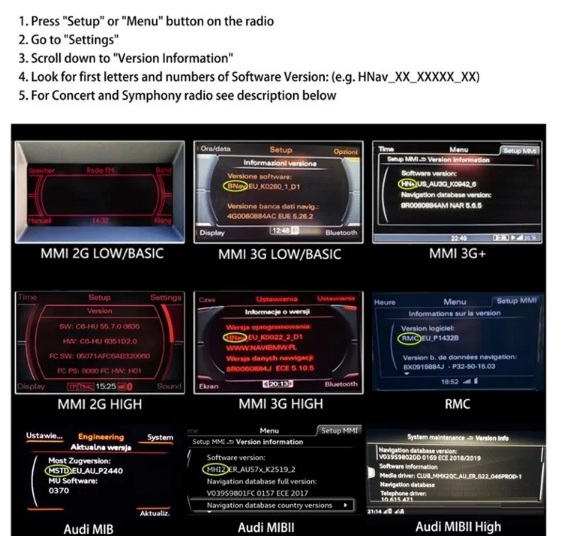 Преди поръчка трябва да снимате менюто, както е показано на снимка 2 и да уточните колко инчов е дисплея на оригиналното Ви радио!