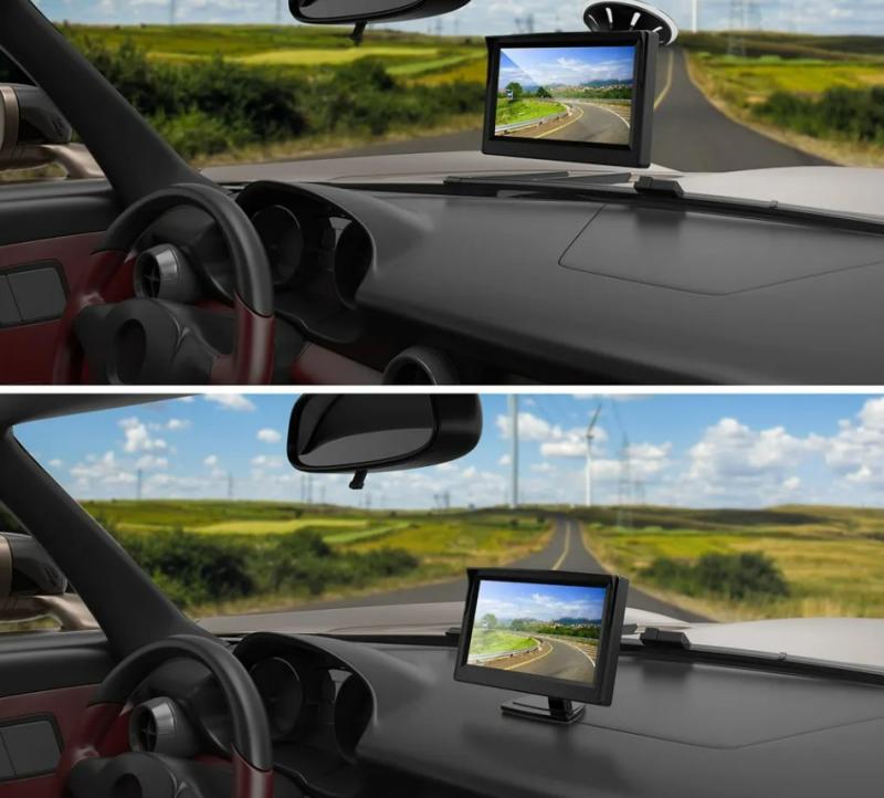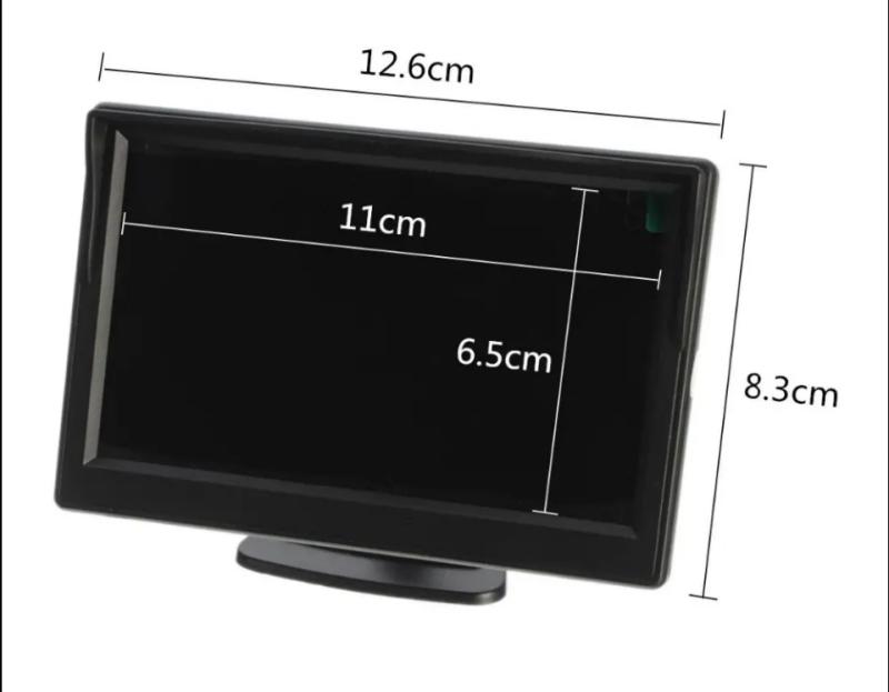 TFT-LCD автомобилен монитор с 5" инча дисплей, предназначен за показване на изображението от камера или друг видео плеър в превозното средство. Монитора включва два видео входа. Мониторът е идеален за свързване на камера за паркиране или друг видео източник.