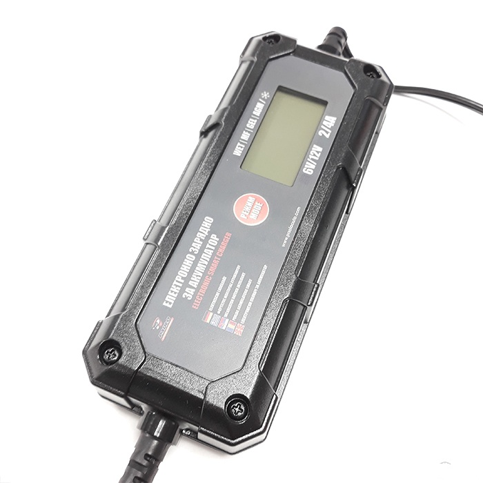 Зарядното е подходящо за 6V и 12V акумулатори (киселинни, гелови, обикновени,АГМ и т.н.)